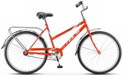 STELS Legenda 200 C – женский дорожный велосипед на 26-дюймовых колесах для спокойного катания по асфальтированным дорожкам, пригородным аллеям и паркам. Есть все необходимое – багажник, защитный кожух цепи, крылья, звонок и комфортное седло. Трансмиссия самая простая – с одной скоростью и привычный всем ножной тормоз. Велосипед имеет качественную стальную раму, конструкция прочна и неприхотлива.